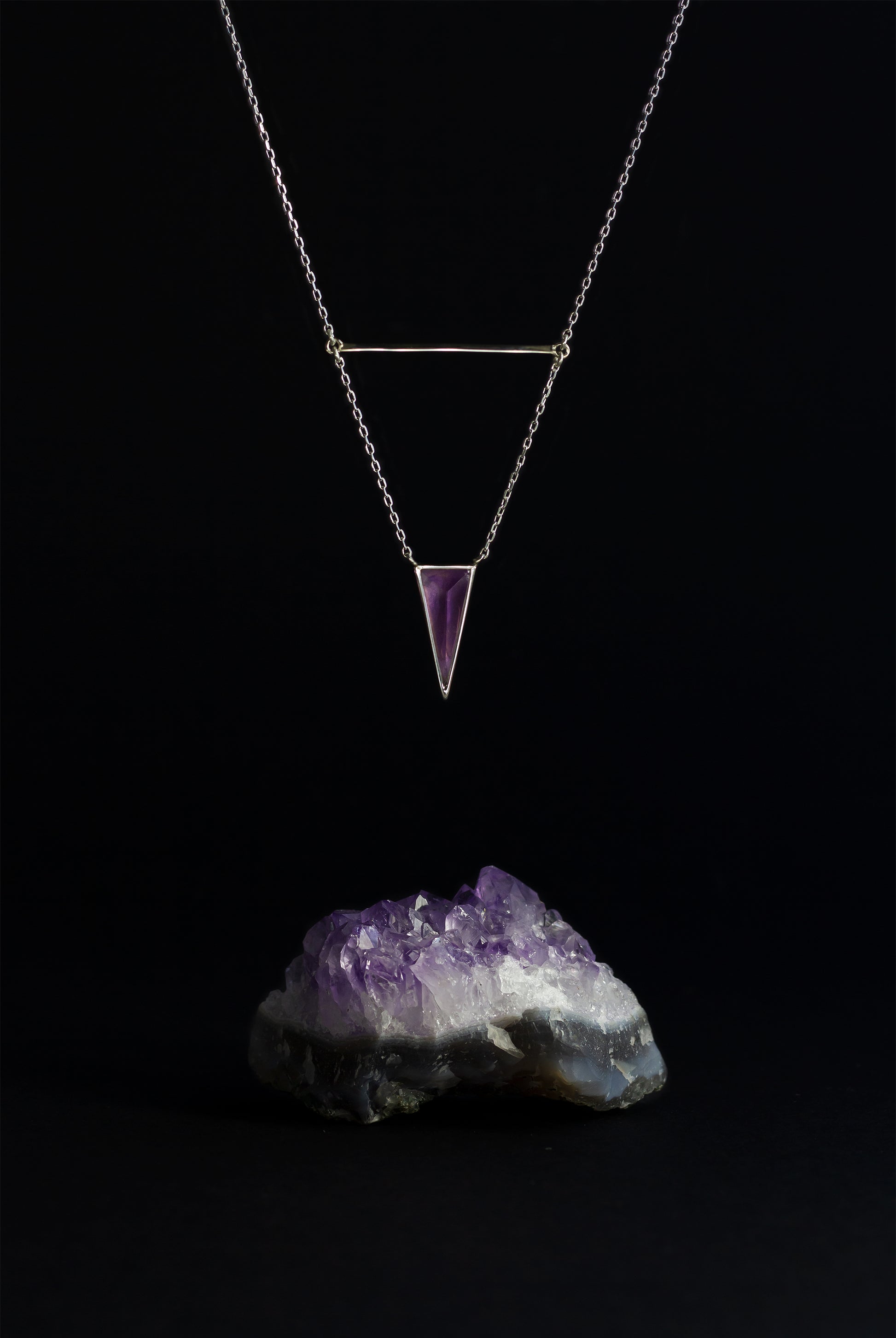 Pendant - Amethyst pyramid set on sterling silver.