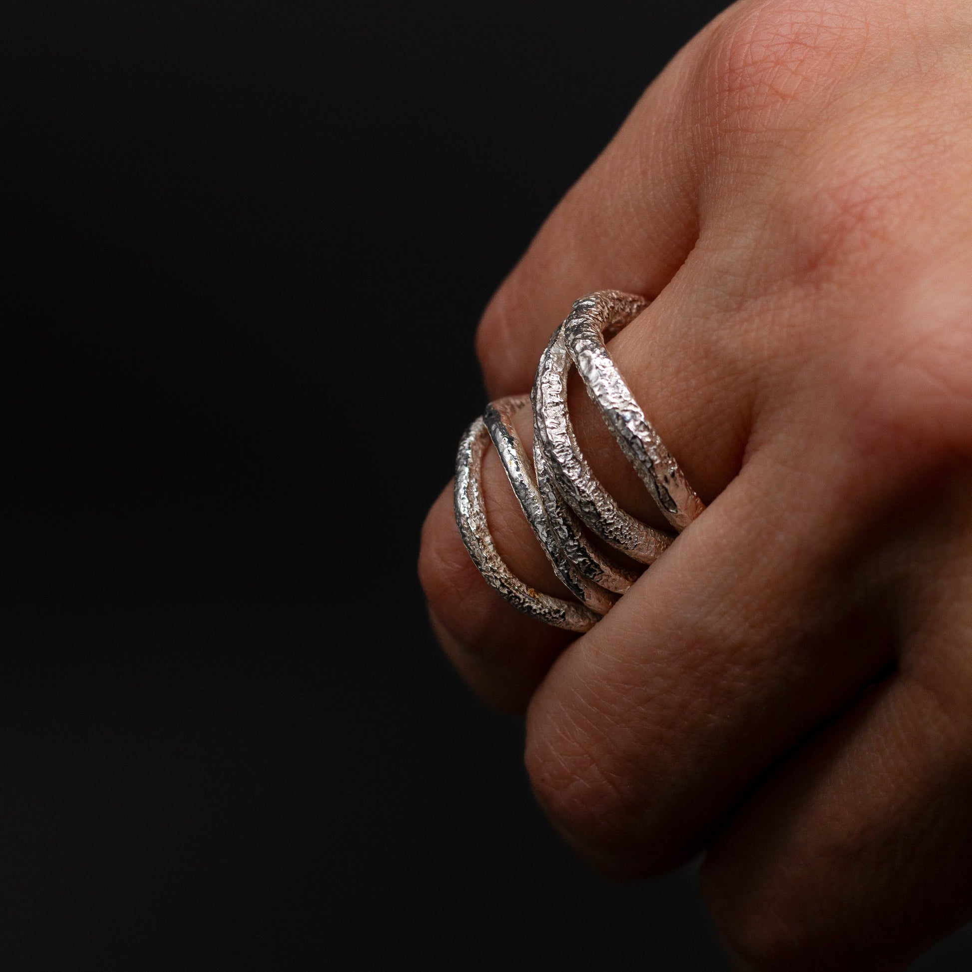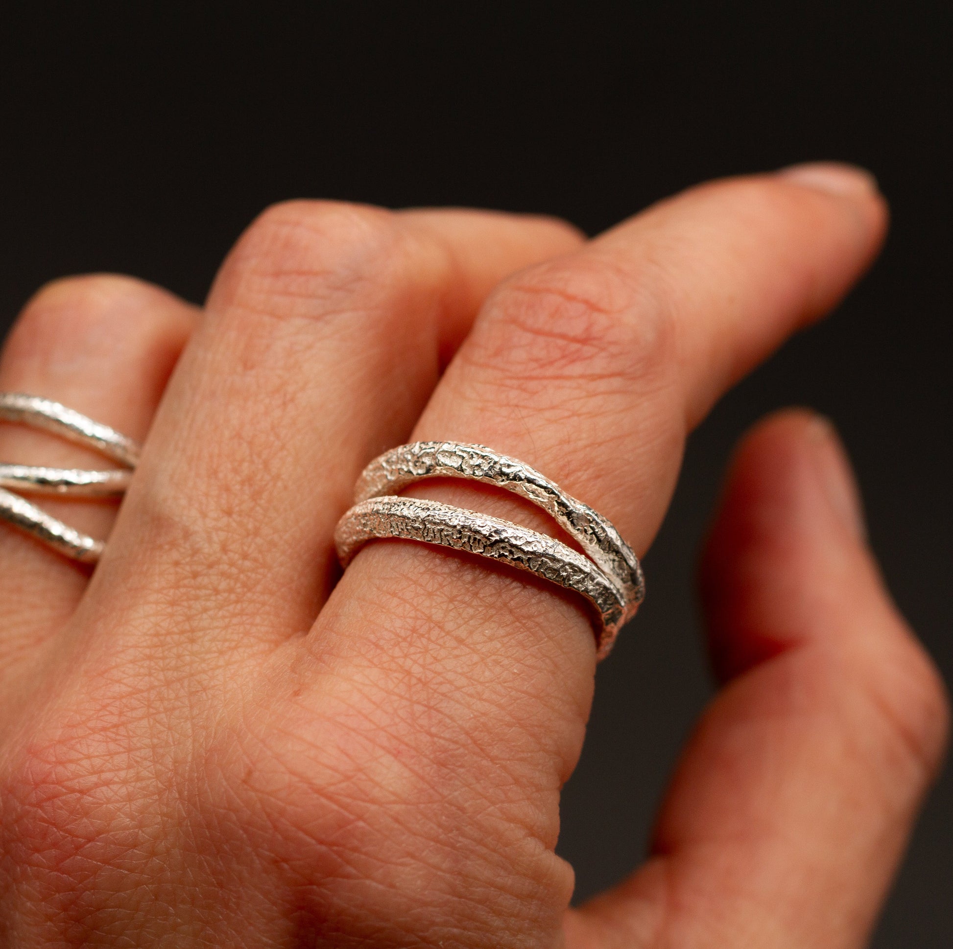 Handcrafted in solid 925 sterling silver, featuring an organic texture shaped by fire, making each piece unique.