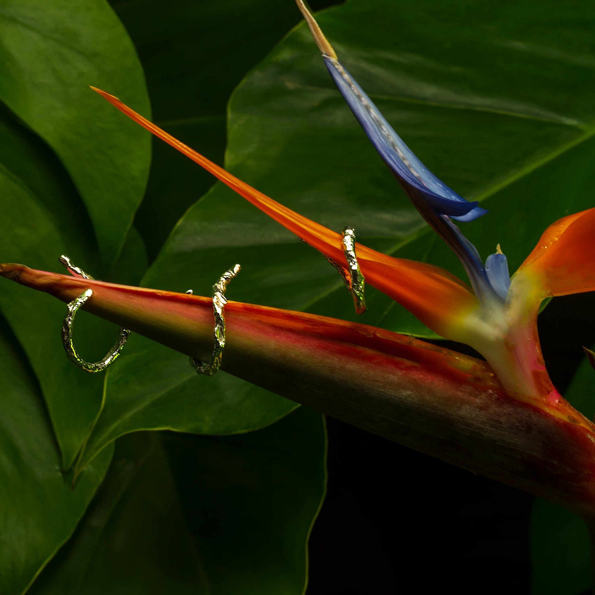 Inchato, which in the Ashaninka language means tree, is a series of pieces inspired by the organic surfaces of tree trunks and vines from the Amazon rainforest. Each ring is hand-textured through an artisanal process that results in unique, one-of-a-kind pieces, where natural variations are part of their identity.