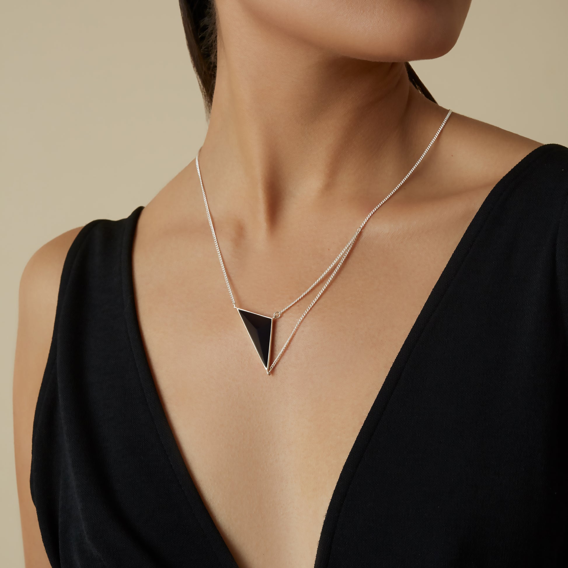 Hand-carved Black Onyx pyramid set on sterling silver