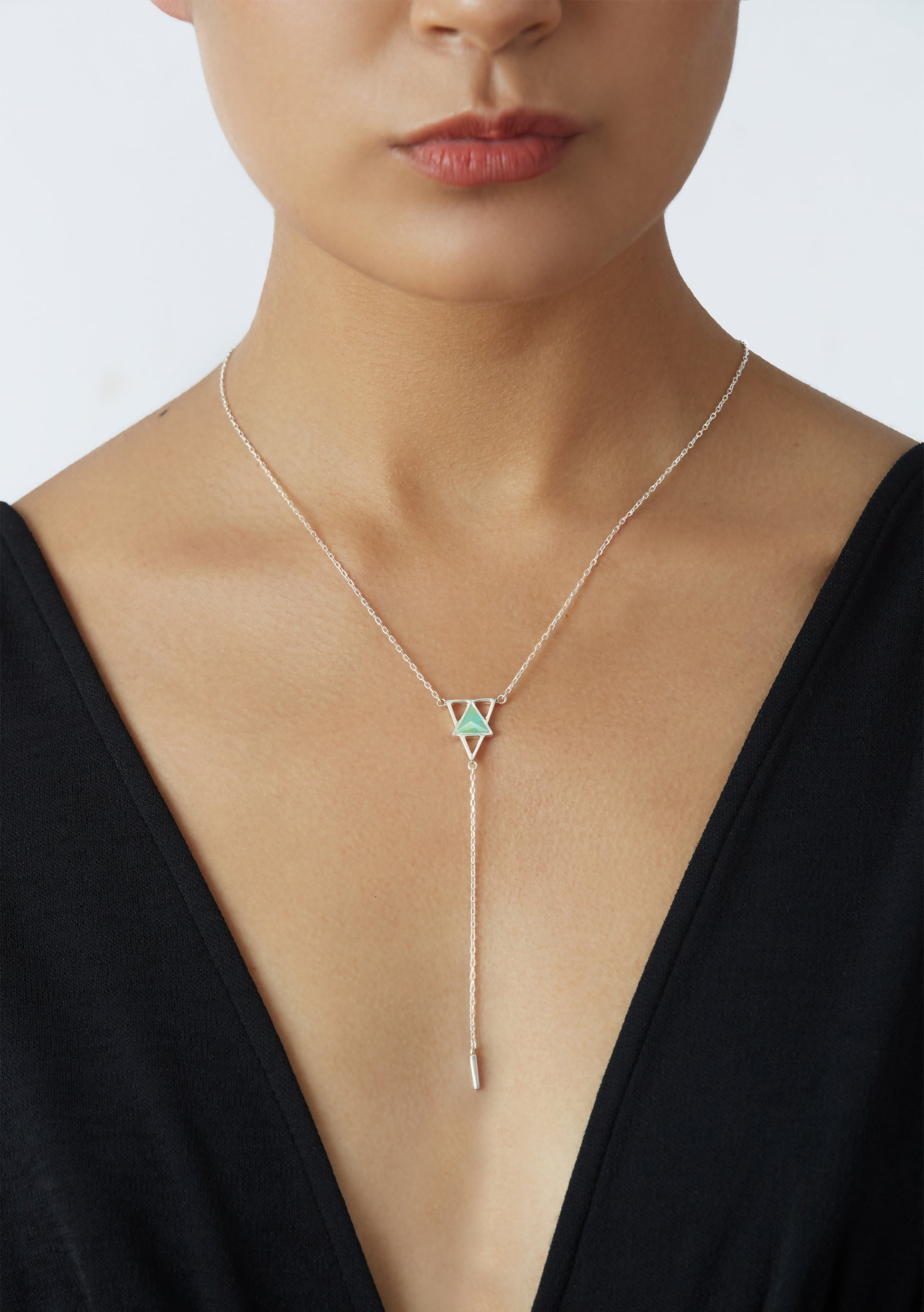 Delicate geometric necklace with an Andean Opal pyramid set on sterling silver
