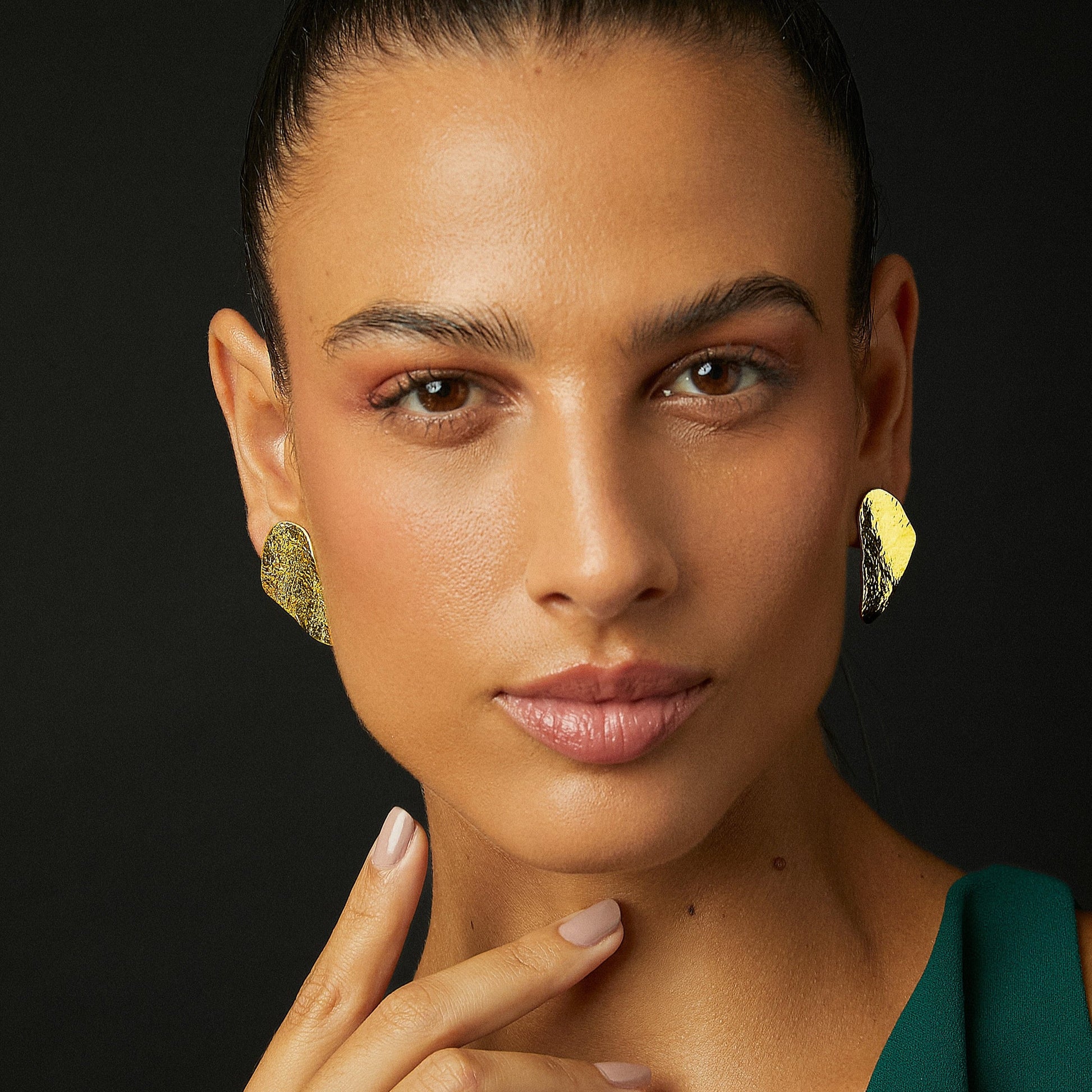 The Oshi serie is a set of earrings whose shape and rough surface are inspired by textures of mushrooms and small plants in the rainforest.